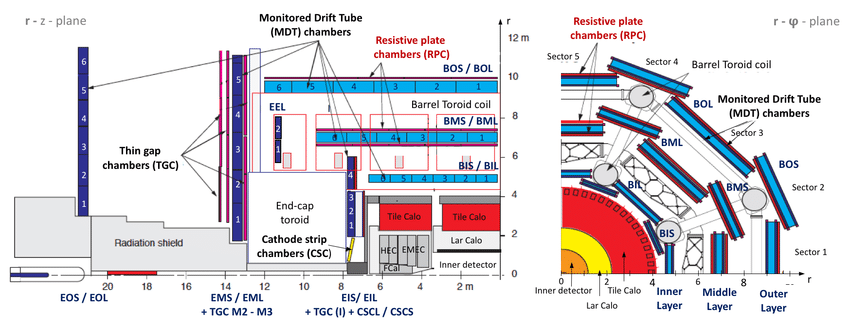 I muoni di alto momento sono tra le più promettenti e robuste caratteristiche degli stati finali di LHC. Per sfruttare questo potenziale, la collaborazione ATLAS ha progettato uno spettrometro di muoni ad alta risoluzione con capacità di misurazione del momento su un’ampia gamma di energie e angoli di queste particelle. Il metodo di misura dello spettrometro si basa sulla deflessione magnetica delle tracce di muoni in un sistema di tre grandi magneti toroidali superconduttori posti in aria.